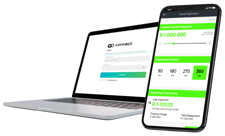 Boss out your retail business with the Connected App. Manage your accounts and devices, and get business funding, all in one place. Available for download on iOS or Android. And, if you prefer a larger screen, do it all from your laptop, go to portal.connected.co.za.